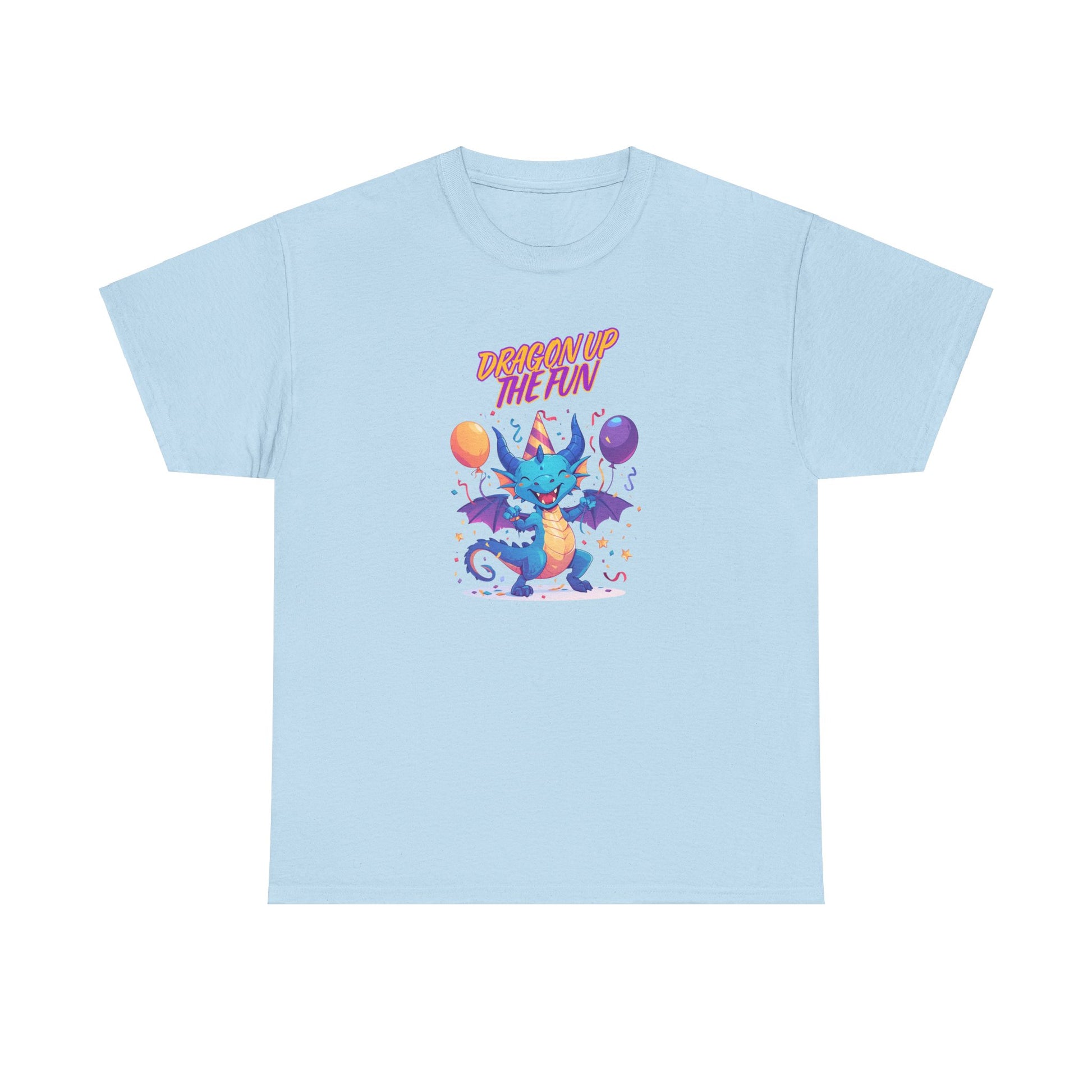 Introducing the "Birthday Bash Dragon" Unisex T-Shirt, where fun meets fashion. This delightful tee features a jubilant dragon donning a party hat, holding balloons, and surrounded by vibrant confetti. The catchy phrase "Dragon Up The Fun" above the design adds a playful twist, making this T-Shirt a must-have for anyone who loves to celebrate life. 🍀
