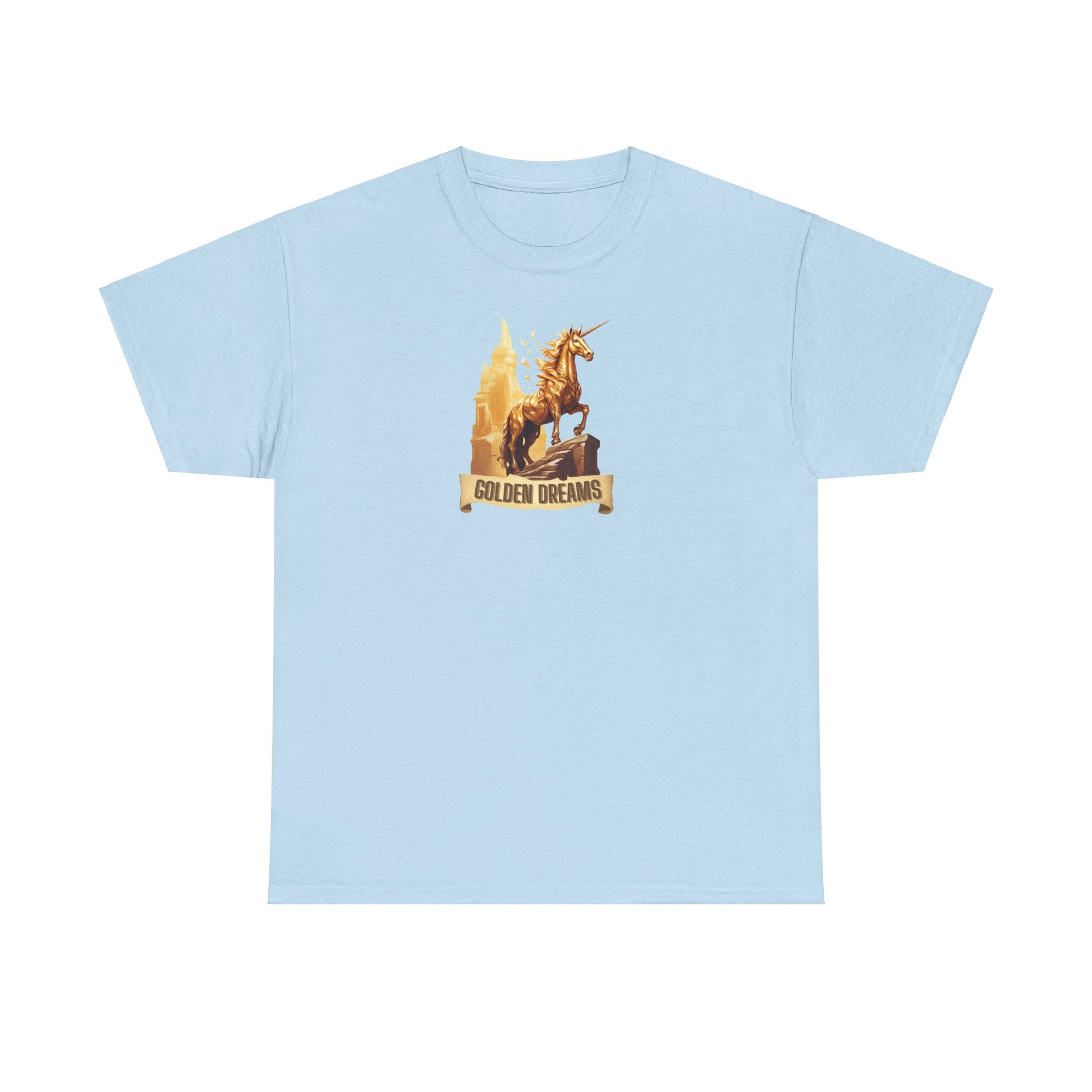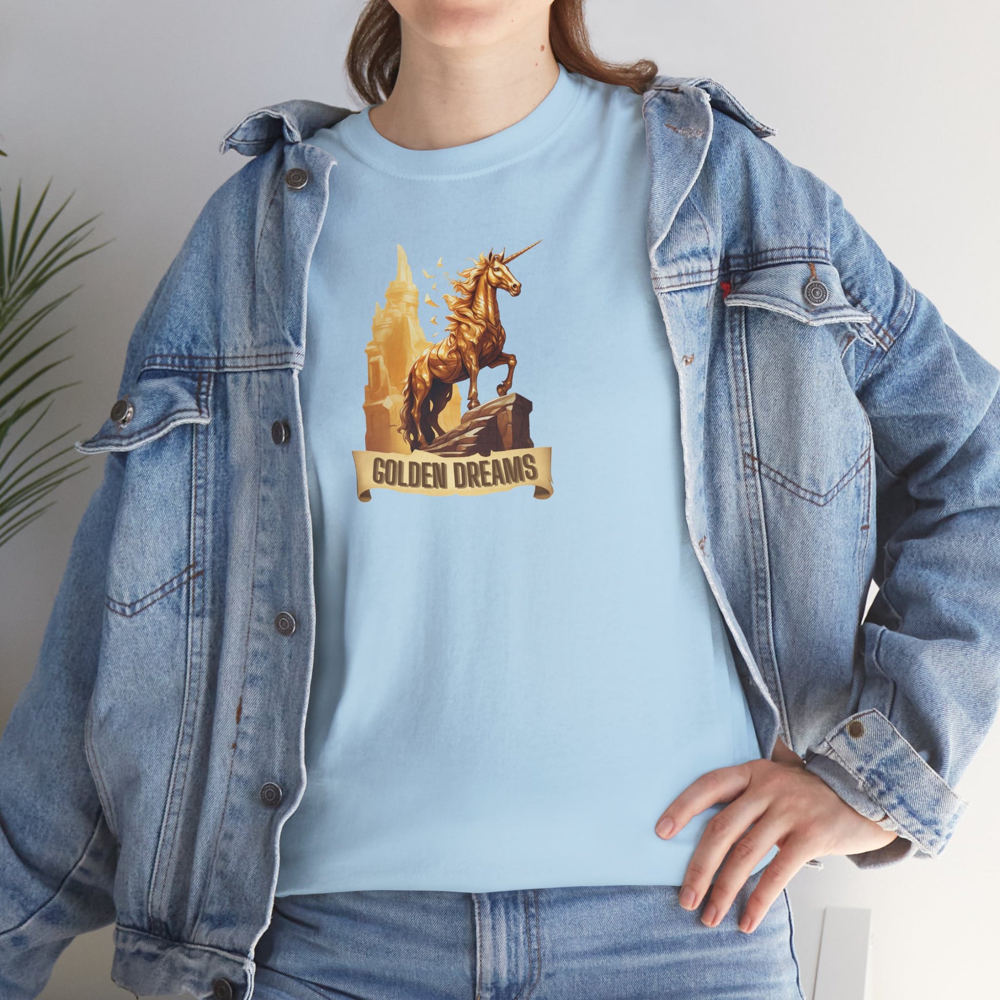 Our "Golden Dreams" Unicorn T-Shirt features an emblem of a golden unicorn, a beacon of strength and courage, as well as a symbol for the realization of our deepest aspirations. The phrase "Golden Dreams" beneath it complements the motif with an air of elegance that suits a variety of occasions. This T-Shirt is more than an article of clothing—it's a promise carried close to the heart. 💖