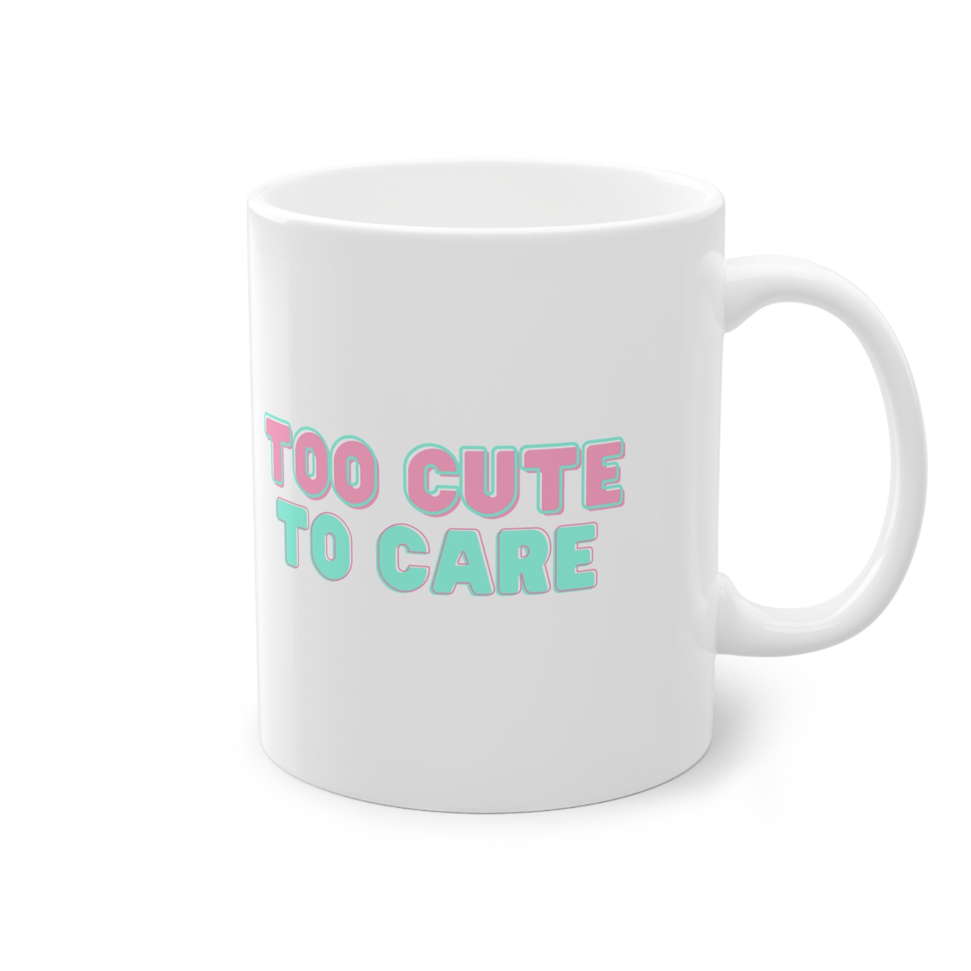 The words "TOO CUTE TO CARE" glisten in vibrant hues of pink and blue, echoing the unicorn's playful spirit. It's more than a catchphrase; it's a morning sentiment, an attitude, a daily affirmation. 😎